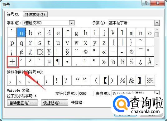 点击其他符号选项在弹出的对话框内找到正负符号选项,如图所示: