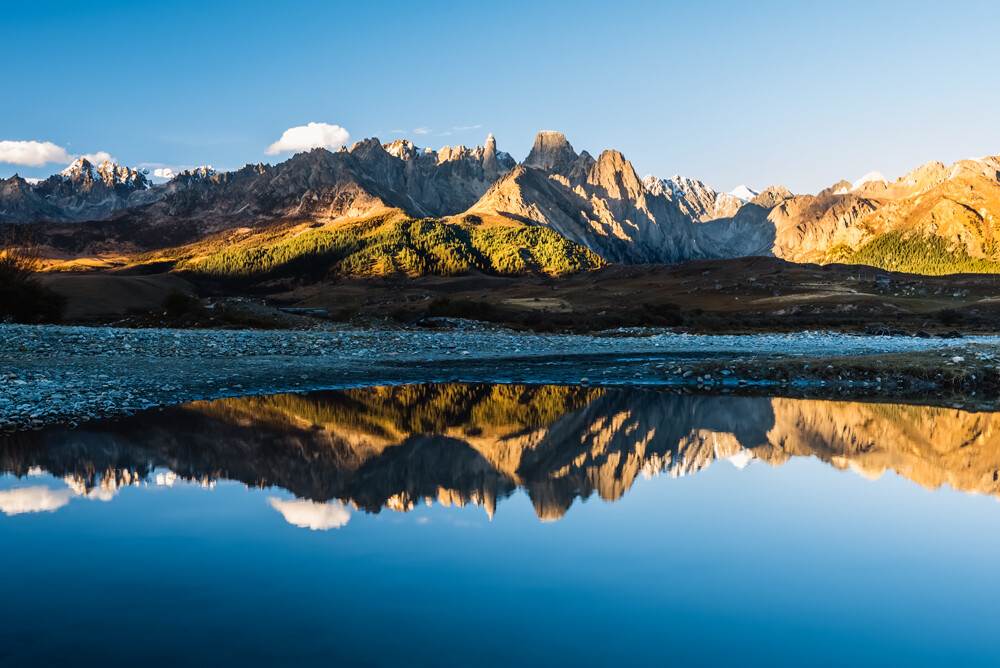 4、葫芦海,位于甘孜州丹巴党岭,这里集雪山、森林、草地、冰河、海子为一体,是一片尚未开发的处女地,深蓝的葫芦海,映着夏羌拉雪山,让人不愿离去。