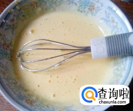 用打蛋器将鸡蛋打成蛋液,要朝着一个方向打。
