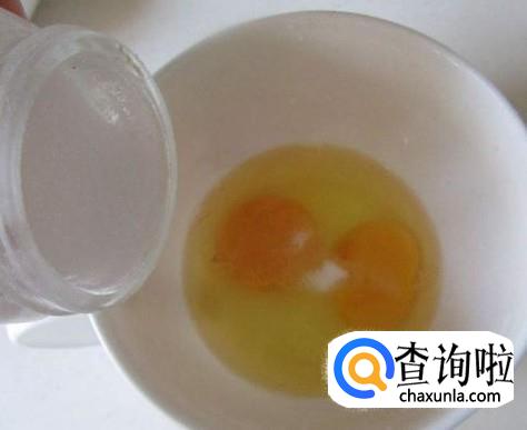 将鸡蛋打入碗中,加入适量的盐和香油,再加入一倍的水。