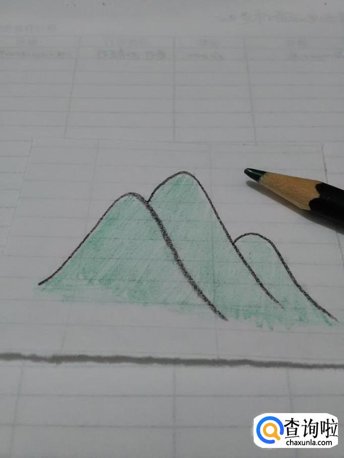 现在开始涂色,用绿色笔将大山涂上颜色。