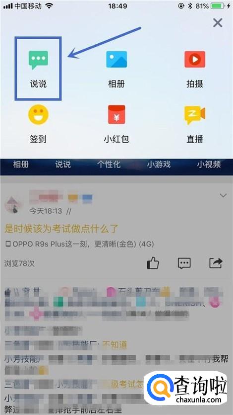 接着点击说说,如下图所示。