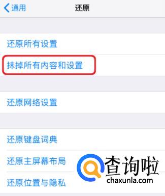 点击:抹除所有内容和设置
