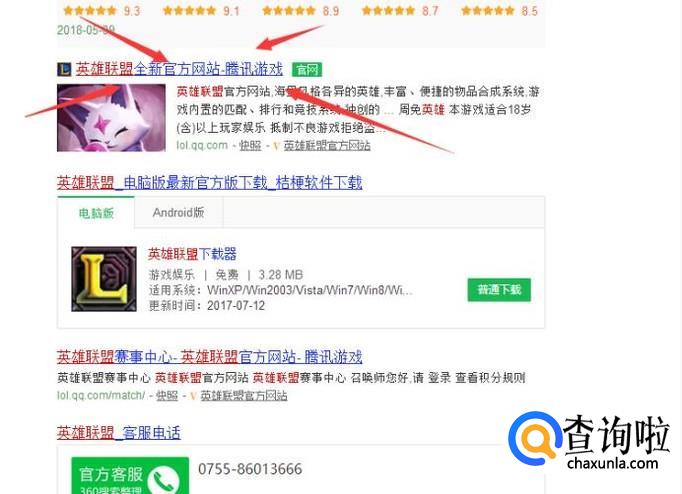 然后找到英雄联盟官网,点击进入,标题里要显示官网俩字,否则则不是他的官方网站。
