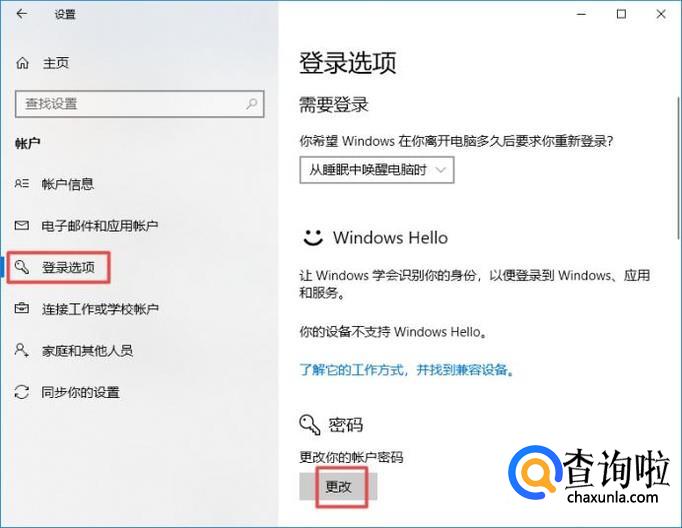 然后我们点击登录选项,之后我们点击密码下方的更改;
