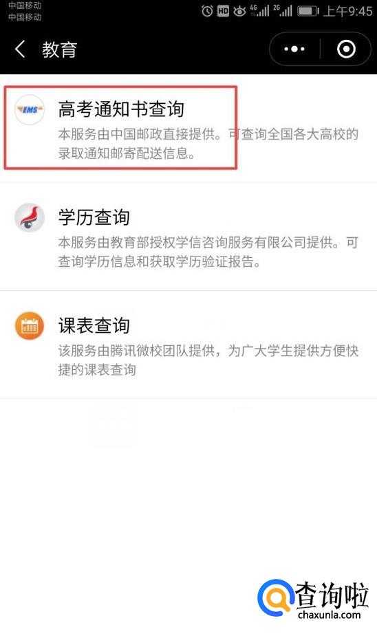 弹出的界面,我们点击高考通知书查询,如图所示;