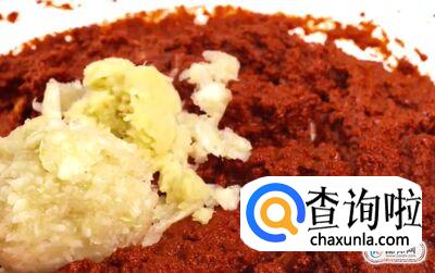 再加入捣碎的蒜泥、姜泥、事先煮好的糯米粥继续搅拌。