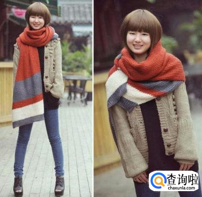 厚实大围巾系法,瘦肩瘦脸一招搞定