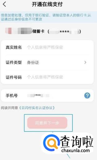 输入真实姓名、证件号码和手机号,然后点击“同意并下一步”。
