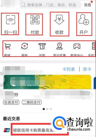 进入到主界面,卡包这个界面,功能很多,可以收付款、转账、开户、显示最近消费交易信息,等等