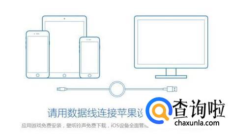 然后根据软件提示将我们的苹果手机和电脑用数据线连接起来,如下图所示。