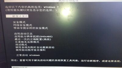 1、重新启动计算机,开机后按下F8键不动直到高级选项画面出现后,再松开手,选择“命令提示符的安全模式”回车。