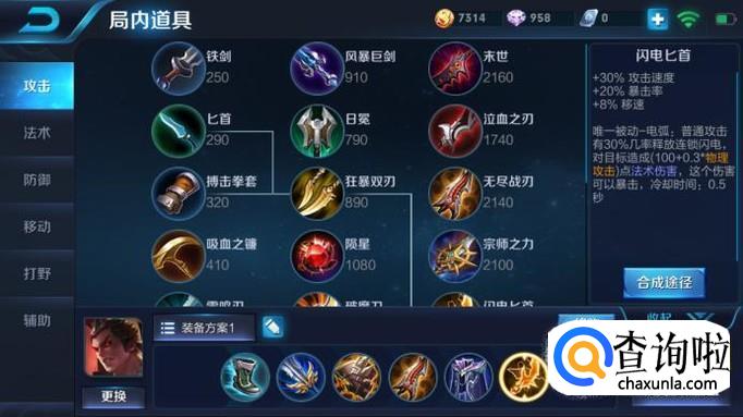 装备推荐影忍之足,破军,不祥之兆,无尽战刃,魔女斗篷,闪电匕首。