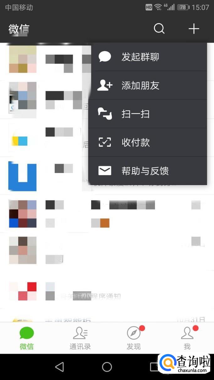 首先,打开手机微信,打开后点击右上角的“+”——“添加朋友”进入。