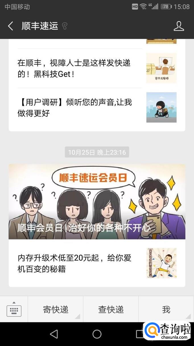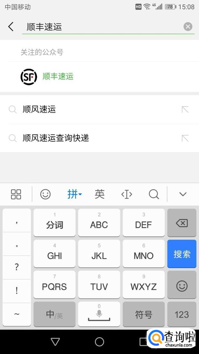 进入后,点击下方的“公众号”进入,搜索“顺丰速运”,点击关注此公众号。