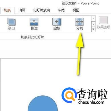 下面展开与切换相关的效果选项,我们从中选择一种效果,比如“分割”;如图所示。