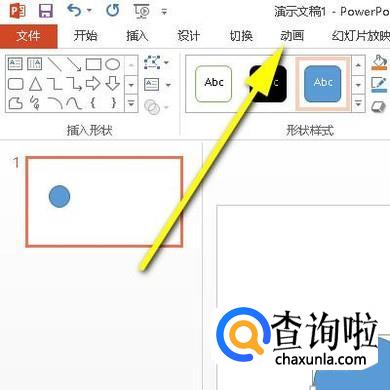 鼠标点开“动画”选项卡。