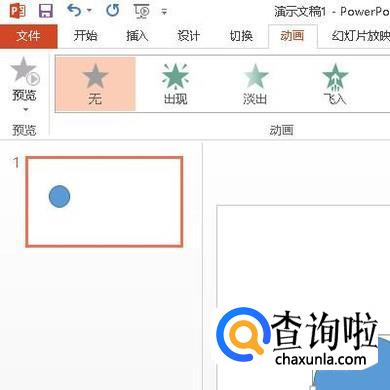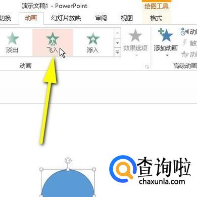 接下来,给圆形设置动画,比如,设置一个飞入动画。