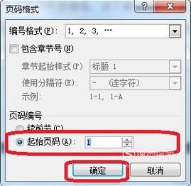 弹出“页码格式”选项框,我们可以设置起始页码为“1”,这样从分节符之后就开始重新编页了。