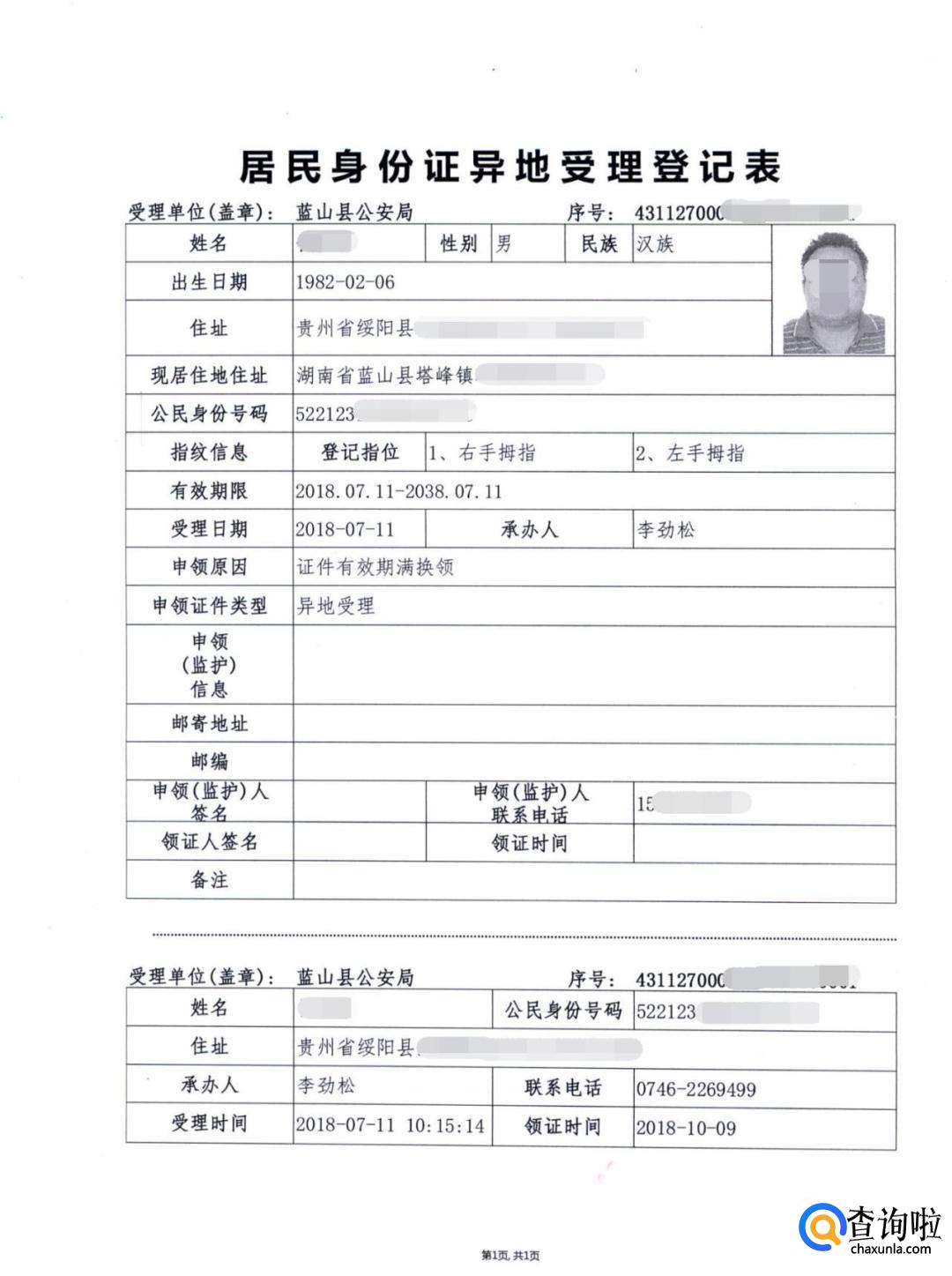 申领表格:《居民身份证申领登记表》或《居民身份证异地受理登记表》