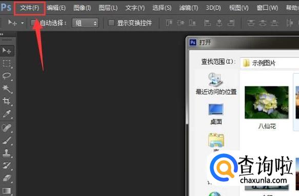 点击左上角“文件”里的打开,打开要修改的照片。右键点击工具栏的第三个选项,选中多边形套索工具。