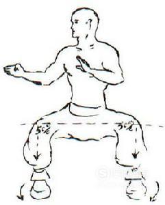 下盘要象木桩一样稳固,重心松沉,在坐胯的同时身体要虚领,头如悬盘,脚入泥中,怀中抱球,身如浮水,间架到位后体会拳谱上讲的“上有绳吊系,下有木桩支撑” 找到后靠、上拉的零界点 。
