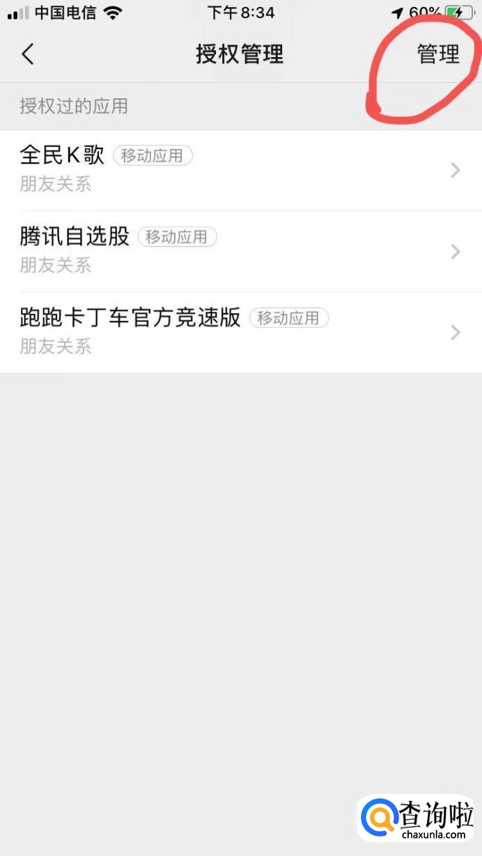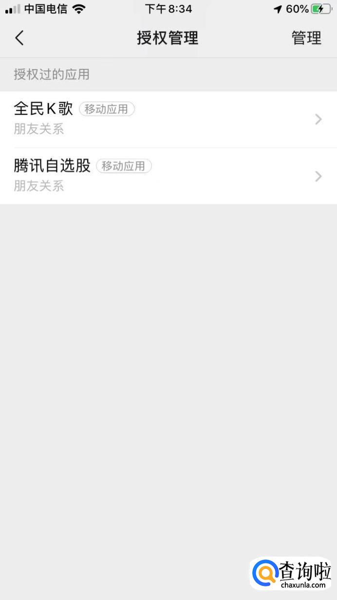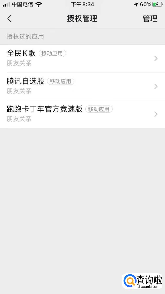 进入授权管理界面后,就可以在这里看见你用微信绑定或授权的应用了。