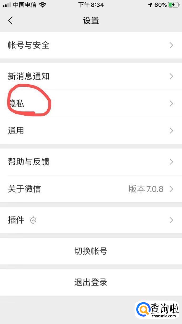 进入设置页面后,点击“隐私”。