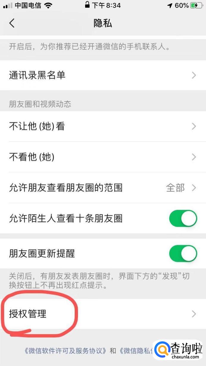 进入隐私界面后,下拉找到“授权管理”后并点击进入