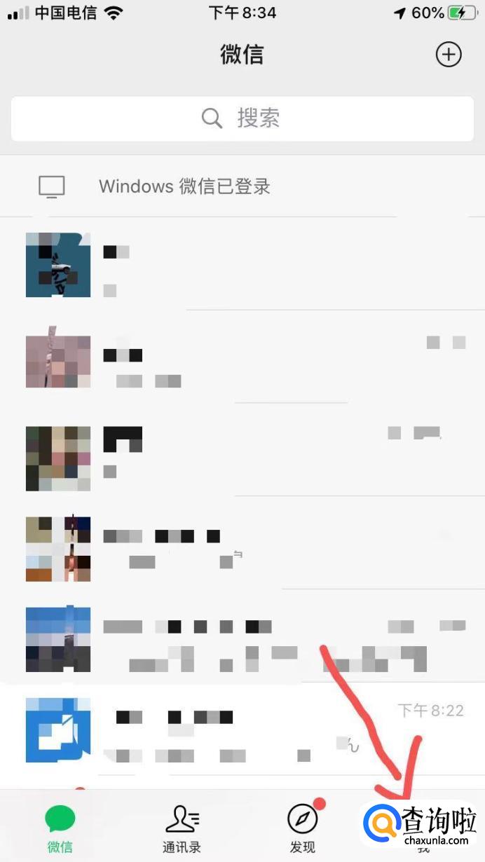 进入微信过后,点击右下方的“我”。