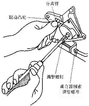 那怎么将离合器调回正常呢,离合器的操作自由行程是10到20mm之间,不在的话就调一下。将离合器的调节锁紧的螺母松开,顺时针来转动,这时候离合器的间隙就会增大,如果逆时针调节的时候,离合器的间隙就会随之减少。