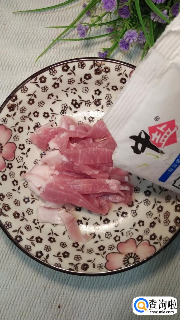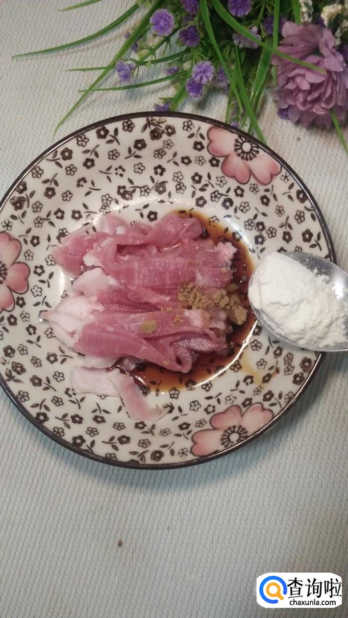 再加入一勺淀粉,搅拌均匀,将肉丝用淀粉裹一下,口感特别嫩。