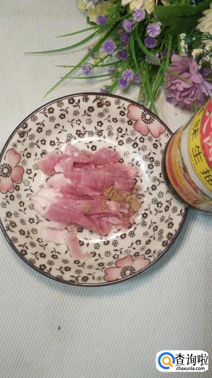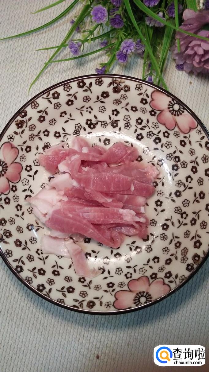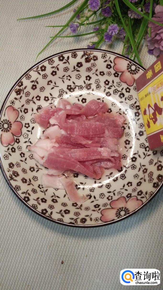 准备适量五花肉,洗净后切成丝状,放入盘中备用,用五花肉来做肉丝面,口感特别好。