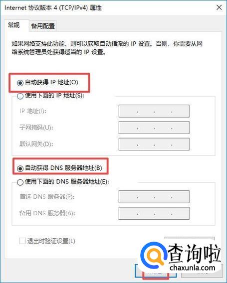 然后我们将IP地址和DNS地址都设置成自动获取,之后点击确定就可以了。