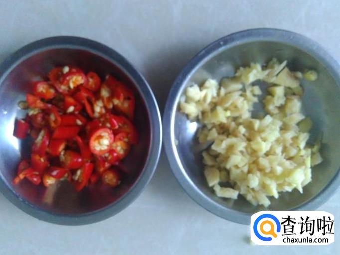 小米辣、蒜米、姜切成碎末,混合一起,加2勺生抽搅拌均匀。