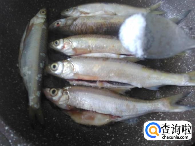 撒适量的盐花,用小火炸煎,煎3分钟左右,熄火,停5分钟左右再开火,就这样反复4次左右。
