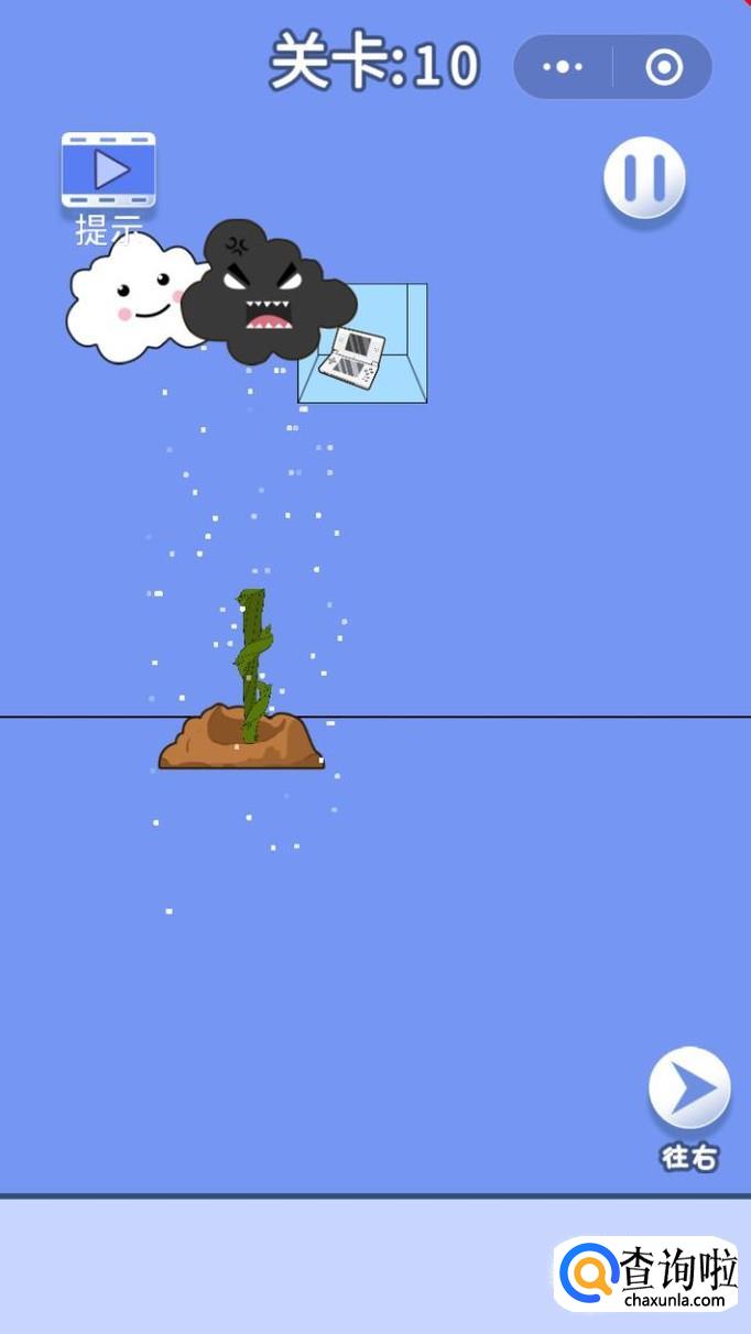 树苗放完后,需要让它长大,拖动黑云到白云上,让它们下雨,树苗就会长大。