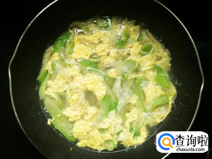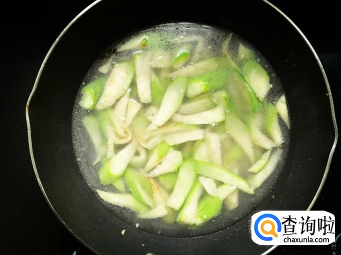 丝瓜炒软后加入适量的水,等水煮开后放入姜片。