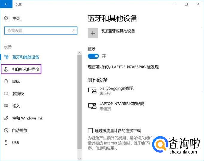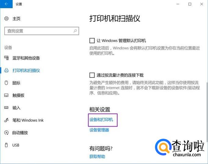 弹出的界面,我们点击打印机和扫描仪;