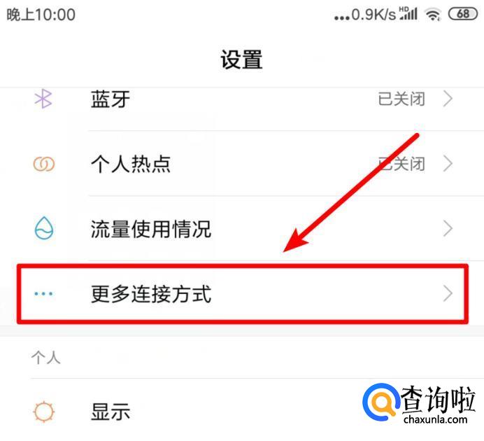 进入设置后,选择更多连接方式的选项。