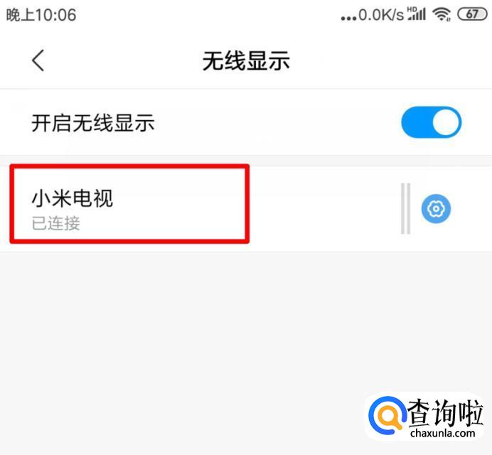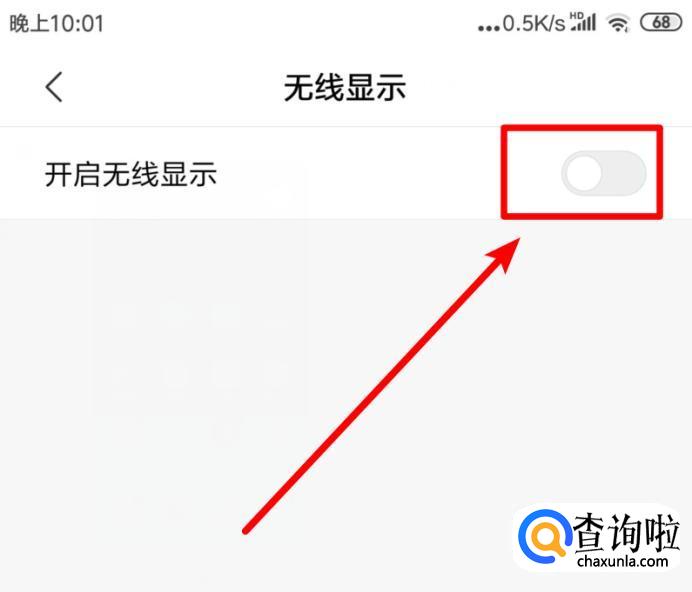 进入后,将小米手机开启无线显示后方的开关打开。