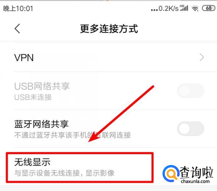点击后,选择无线显示的选项进入。