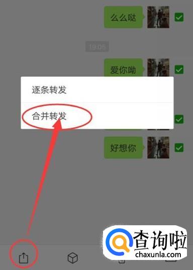 点击图示位置,然后选择“合并发送”,将其发送给需要的好友即可。