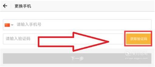 更换手机的页面,再点击获取验证码,输入完验证码后,点击下一步
