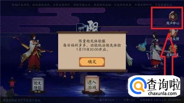首先先登陆阴阳师,点击右上角的用户中心然后点击进入,再点击账号管理这一项。