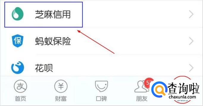 打开支付宝APP以后,我们首先点击右下角的"我的",然后我们会看到芝麻信用这一项,如下图所示...