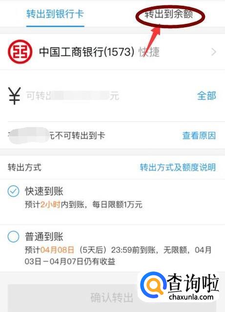 在这里我要特别提示,很多人可能不知道,通过余额宝转入到银行卡是不能全额转出的,所以说这里我为什么要大家转出到余额,只有通过这个方式才能全额转出