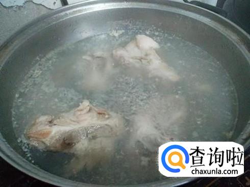 锅里加水烧开,把猪排骨焯一下,去掉肉里的血液和残渣。