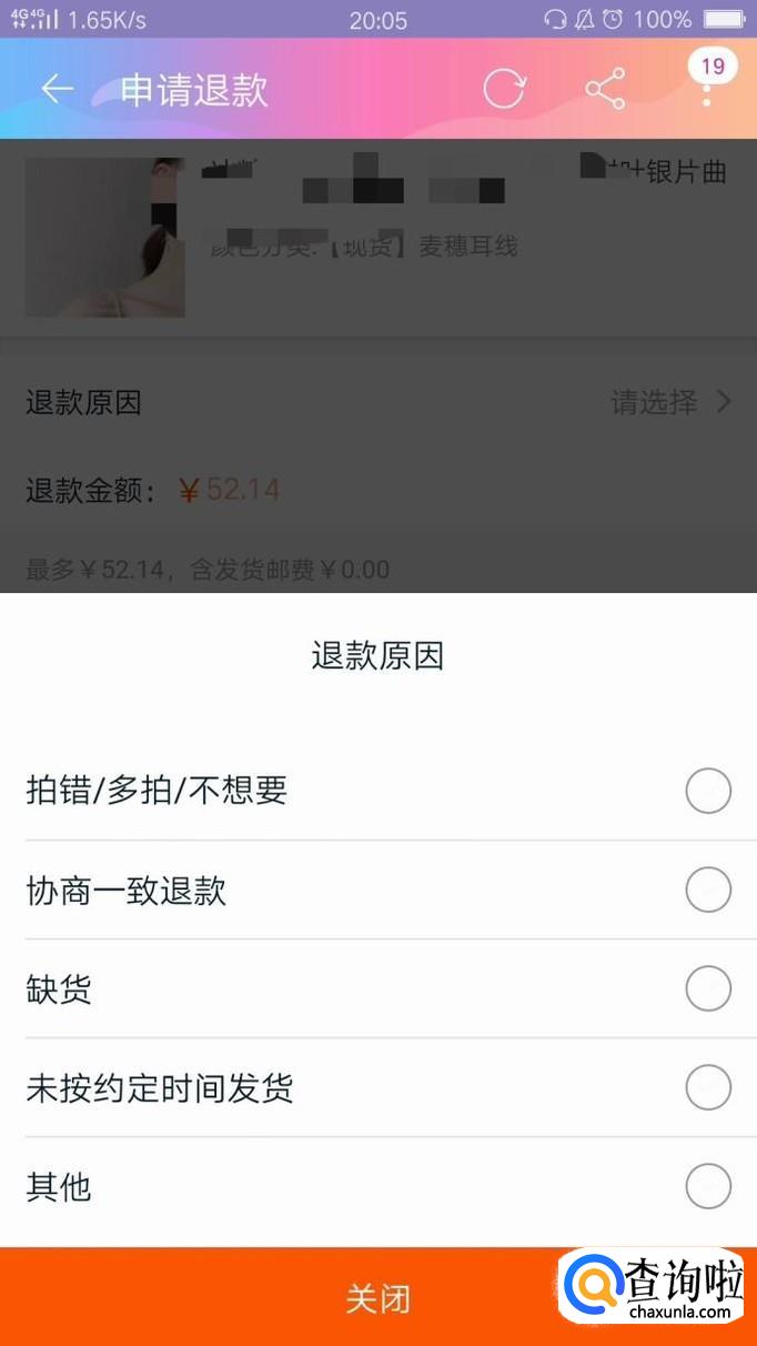 接着,我们就要填写退款原因,根据自己的真实情况,选中相应的选项就可以了。选好之后点击确定,商家同意之后就会把钱退回来。