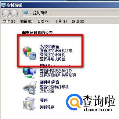 弹出控制面板界面,再点:系统和安全